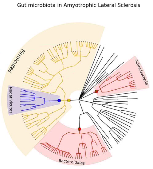 - Rowin, J.; Xia, Y.; Jung, B.; Sun, J. Gut Inflammation and Dysbiosis in Human Motor Neuron Disease. Physiol. Rep. 2017, 5, e13443. [Google Scholar] [CrossRef]