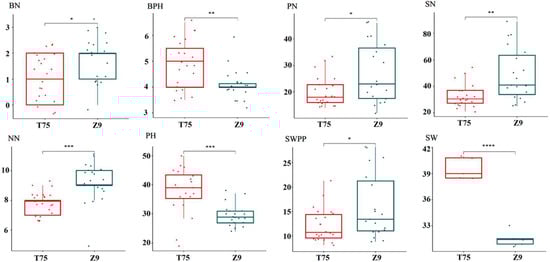 2.5. Genes Associated with SVs and TE Variations between T75 and Z9