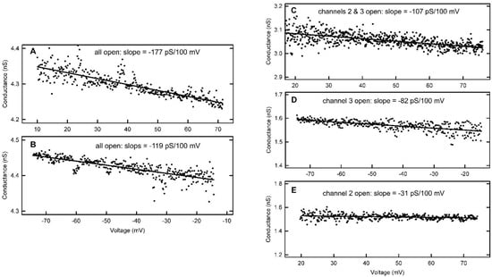 | Subunits Open | Voltage Range | G/V (pS/100 mV) | Number of Experiments |