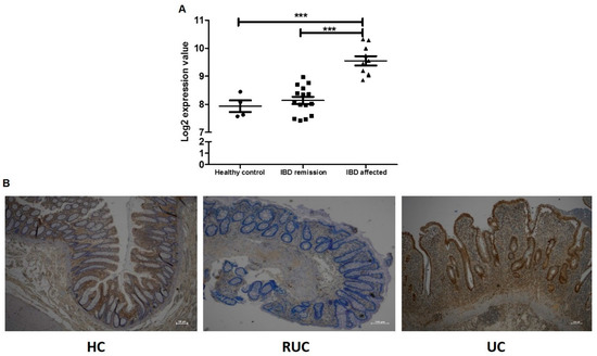 - Wu, F.; Dassopoulos, T.; Cope, L.; Maitra, A.; Brant, S.R.; Harris, M.L.; Bayless, T.M.; Parmigiani, G.; Chakravarti, S. Genome-wide gene expression differences in Crohn’s disease and ulcerative colitis from endoscopic pinch biopsies: Insights into distinctive pathogenesis. Inflamm. Bowel Dis. 2007, 13, 807–821. [Google Scholar] [CrossRef] [PubMed]