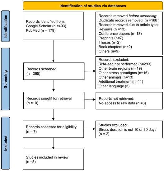 APA StyleReshetnikov, V. V., Kisaretova, P. E., & Bondar, N. P. (2022). Transcriptome Alterations Caused by Social Defeat Stress of Various Durations in Mice and Its Relevance to Depression and Posttraumatic Stress Disorder in Humans: A Meta-Analysis. International Journal of Molecular Sciences, 23(22), 13792. https://doi.org/10.3390/ijms232213792