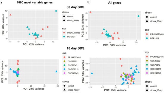 3.3. Transcriptome Alterations Caused by 30-Day SDS