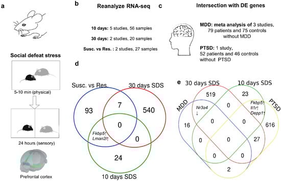 Chicago/Turabian StyleReshetnikov, Vasiliy V., Polina E. Kisaretova, and Natalia P. Bondar. 2022. "Transcriptome Alterations Caused by Social Defeat Stress of Various Durations in Mice and Its Relevance to Depression and Posttraumatic Stress Disorder in Humans: A Meta-Analysis" International Journal of Molecular Sciences 23, no. 22: 13792. https://doi.org/10.3390/ijms232213792