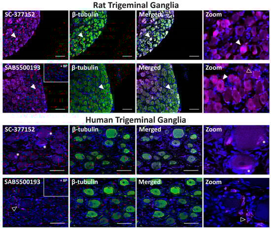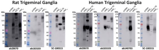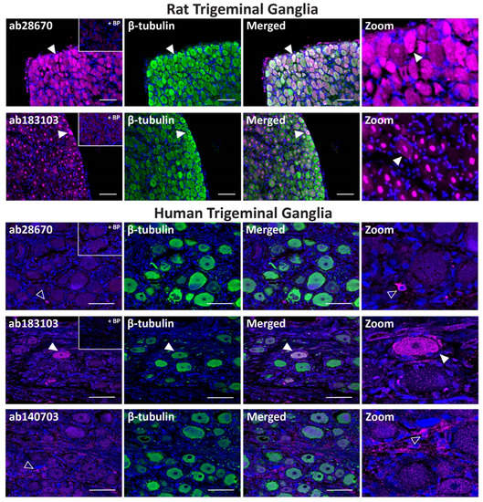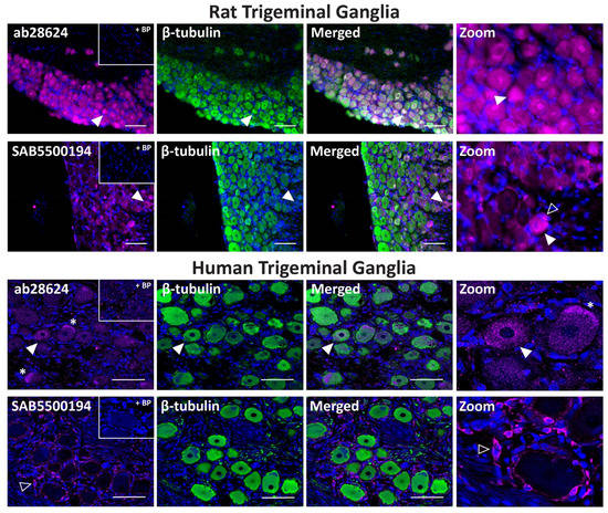 | Antibody | Rat Trigeminal Ganglia | Human Trigeminal Ganglia | |||||