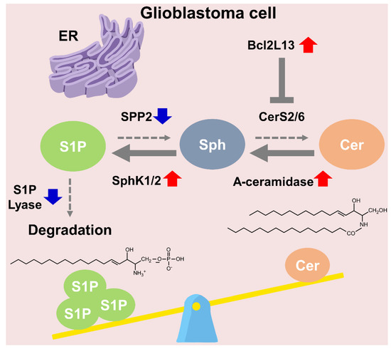 - Abuhusain, H.J.; Matin, A.; Qiao, Q.; Shen, H.; Kain, N.; Day, B.W.; Stringer, B.W.; Daniels, B.; Laaksonen, M.A.; Teo, C.; et al. A metabolic shift favoring sphingosine 1-phosphate at the expense of ceramide controls glioblastoma angiogenesis. J. Biol. Chem. 2013, 288, 37355–37364. [Google Scholar] [CrossRef]