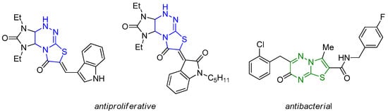 Over the last decade, our attention was focused on thiazolo-1,2,4-triazines [,,,,,] because these compounds showed antiproliferative and antibacterial activities (Figure 2) [,,,,,].