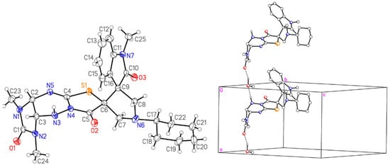 Compounds 3a and 7c crystalize in centrosymmetric space groups P21/c and respectively, while 4e structure crystalizes in an acentric orthorhombic space group P212121 as an inversion twin. Thus, these compounds crystalize as racemic mixtures of two enantiomers. The relative configurations of chiral centers of independent part of compounds 3a (3aR*,4′R*,6S*,9aS*), 4e (3aR*,4′S*,6R*,9aS*) and 7c (3aR*,4′S*,7R*,9aR*) were unambiguously assigned by single crystal X-ray diffraction (Figure 3, Figure 4 and Figure 5).