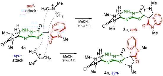 3.2. General Procedure for the Preparation of Dispiro[imidazo[4,5-e]thiazolo[3,2-b][1,2,4]triazine-6,3′-pyrrolidine-4′,3′′-indole] 3a–e and 4a–e
