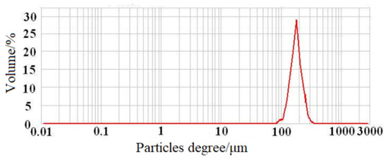 MRCM pictures measured by a three-dimensional microscopy system with super-depth of field are shown in Figure 1. MRCM is a black spherical particle (Figure 1a) with a smooth and raised surface (Figure 1b). This may be magnetic particles wrapped inside the chitosan microsphere. The MRCM particle size analysis results measured by laser diffraction particle size analyzer (Figure 2) showed that the average particle size of MRCM was approximately 208.138 μm. The 100% particle size of MRCM was less than 363.078 μm, and the particle sizes of 90%, 50%, and 10% were less than 286.032 μm, 197.515 μm, and 140.472 μm, respectively. During the preparation of MRCM, the mass ratio of added iron to chitosan was approximately 0.173:1. By measurement, the iron content in MRCM was 19.3655 mg/g. The average mass ratio of iron to magnetic particles was 0.019:1, indicating that approximately 10.98% of the ferromagnetic fluid added to MRCM. The physical properties of MRCM are shown in Table 1. MRCM contained iron ions that can bind to water molecules, so MRCM has high water content. Furthermore, during the preparation of MRCM, two reagents, formaldehyde and glutaraldehyde, were used, which impart physical properties of MRCM such as cross-linking degree and suspension aldehyde group. In addition to the coordination effect with iron ions, the free amino group of chitosan in MRCM had some residues, so MRCM had a weak alkali exchange capacity. From the above analysis, it can be seen that MRCM is a type of black spherical, porous, water-absorbing, and weak alkali exchange resin, and it can be inferred that MRCM has the ability to adsorb methyl orange.