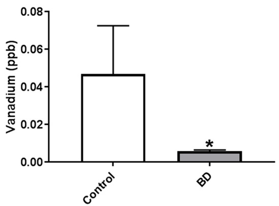 2.2. Vanadium Concentrations in PFC of BD Patients Is Lower than in Matched Controls