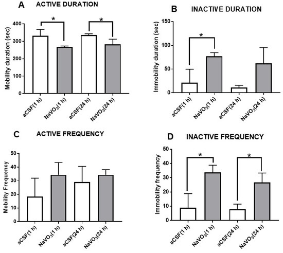 - Sanchez, D.J.; Colomina, M.T.; Domingo, J.L. Effects of vanadium on activity and learning in rats. Physiol. Behav. 1998, 63, 345–350. [Google Scholar] [CrossRef]