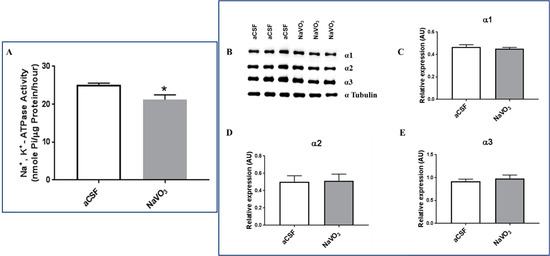 - Silva, V.S.; Duarte, A.I.; Rego, A.C.; Oliveira, C.R.; Goncalves, P.P. Effect of chronic exposure to aluminium on isoform expression and activity of rat (Na+/K+)ATPase. Toxicol. Sci. 2005, 88, 485–494. [Google Scholar] [CrossRef]