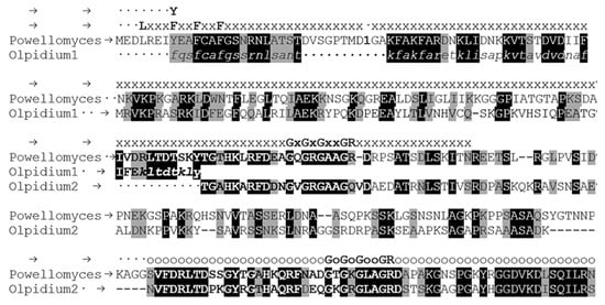 - Chang, Y.; Rochon, D.; Sekimoto, S.; Wang, Y.; Chovatia, M.; Sandor, L.; Salamov, A.; Grigoriev, I.V.; Stajich, J.E.; Spatafora, J.W. Genome-scale phylogenetic analyses confirm Olpidium as the closest living zoosporic fungus to the non-flagellated, terrestrial fungi. Sci. Rep. 2021, 11, 3217. [Google Scholar] [CrossRef] [PubMed]