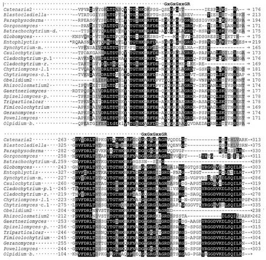 - James, T.Y.; Letcher, P.M.; Longcore, J.E.; Mozley-Standridge, S.E.; Porter, D.; Powell, M.J.; Griffith, G.W.; Vilgalys, R. A molecular phylogeny of the flagellated fungi Chytridiomycota. and description of a new phylum Blastocladiomycota. Mycologia 2006, 98, 860–871. [Google Scholar] [CrossRef] [PubMed]