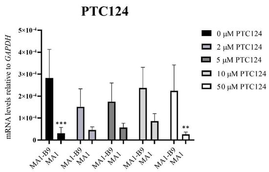 - PTC124 (Merck, Darmstadt, Germany; #5309180001). Treatment at 2, 5, 10 and 50 μM.