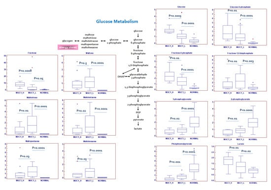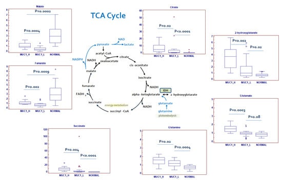 2.2. MUC1 Expression Distinguishes ccRCC with Different Perturbations of Glucose Metabolism