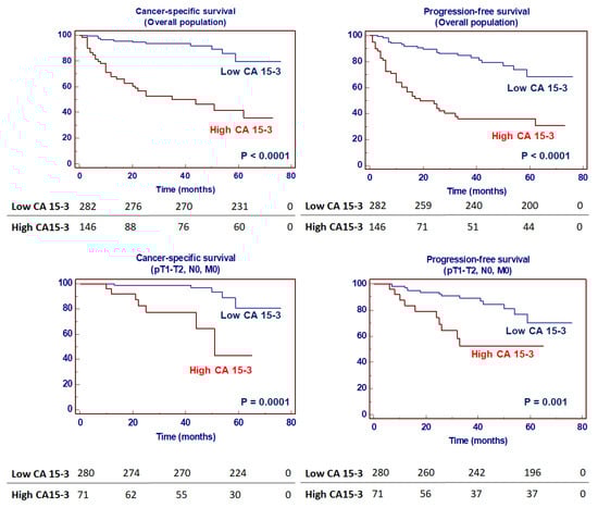 | CA15-3 | >25 vs. ≤25 U/mL | 2.35 | 1.18 | 4.76 | 0.001 | 1.95 | 1.04 | 2.85 | 0.01 |
