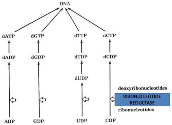 | of ribonucleotides to deoxyribonucleotides in DNA synthesis. |