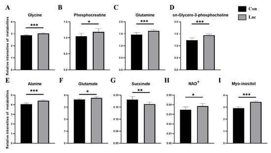 2.5. Lactate Treatment Changed the Levels of Metabolites in Myoblasts