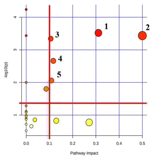 4.10. Multivariate Statistics Analysis and Identification of Significant Metabolites