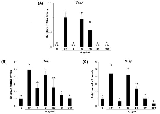 Chicago/Turabian StyleLee, Tae Ho, Hang Yeon Jeong, Do Yeon An, Haesung Kim, Jeong-Yong Cho, Do Young Hwang, Hyoung Jae Lee, Kyung-Sik Ham, and Jae-Hak Moon. 2022. "Bamboo Salt and Triple Therapy Synergistically Inhibit Helicobacter pylori-Induced Gastritis In Vivo: A Preliminary Study" International Journal of Molecular Sciences 23, no. 22: 13997. https://doi.org/10.3390/ijms232213997