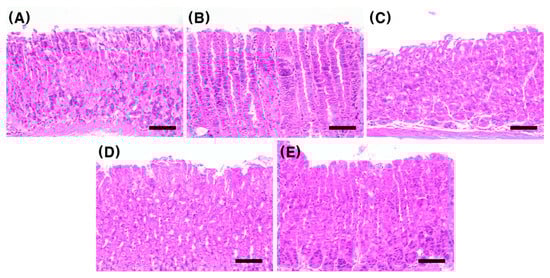 - Fox, J.G.; Dangler, C.A.; Taylor, N.S.; King, A.; Koh, T.J.; Wang, T.C. High-salt diet induces gastric epithelial hyperplasia and parietal cell loss, and enhances Helicobacter pylori colonization in C57BL/6 mice. Cancer Res. 1999, 59, 4823–4828. [Google Scholar]