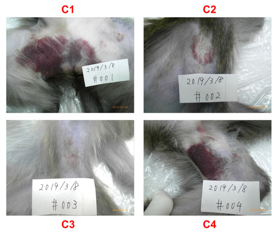 Change in the skin in ZIKV-infected monkeys. A change in the skin of group C (control) was observed. C1–C4 denotes each animal ID in group C. ZIKV, Zika virus.