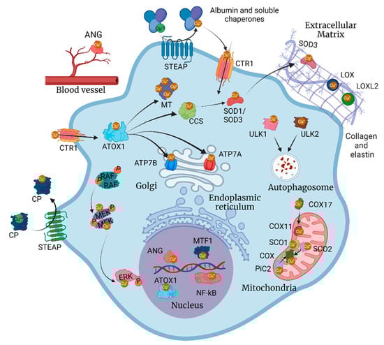 - Emanuela Urso, M.M. Behind the Link between Copper and Angiogenesis: Established Mechanisms and an Overview on the Role of Vascular Copper Transport Systems. J. Vasc. Res. 2014, 52, 172–196. [Google Scholar] [CrossRef]