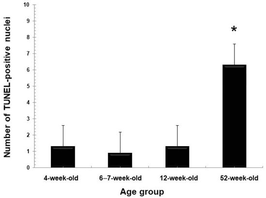 - Jara, M.; Carballada, R.; Esponda, P. Age-induced apoptosis in the male genital tract of the mouse. Reproduction 2004, 127, 359–366. [Google Scholar] [CrossRef]