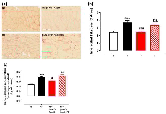 Wang, Y.; Yodgee, J.; Del Borgo, M.; Spizzo, I.; Nguyen, L.; Aguilar, M.-I.; Denton, K.M.; Samuel, C.S.; Widdop, R.E. The Novel AT2 Receptor Agonist β-Pro7-AngIII Exerts Cardiac and Renal Anti-Fibrotic and Anti-Inflammatory Effects in High Salt-Fed Mice. Int. J. Mol. Sci. 2022, 23, 14039. https://doi.org/10.3390/ijms232214039