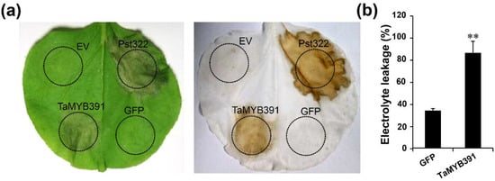 2.5. Transient Overexpression of TaMYB391 in N. benthamiana Triggered HR-Related Programmed Cell Death