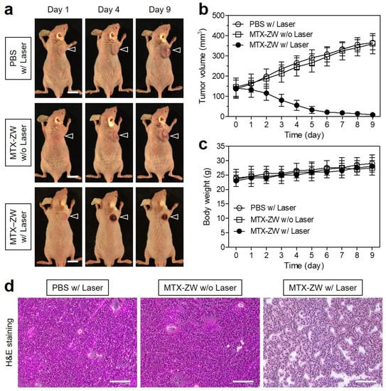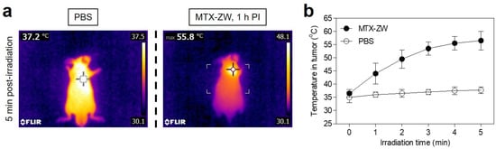 2.5. In Vivo Photothermal Therapeutic Efficacy