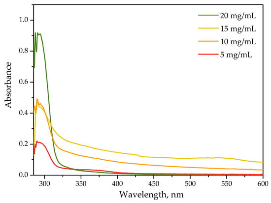 UV-Vis spectra of protein particles suspensions obtained using various concentration of albumin solution.