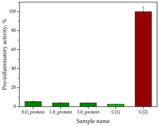 Results of analysis of hydrogels’ pro-inflammatory activity (n—number of repetitions n = 3).