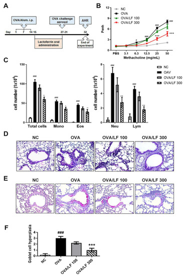 2.1. LF Improved OVA-Induced AHR and Pulmonary Inflammation in BALB/c Mice