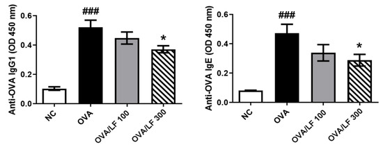 2.3. LF Regulated OVA-Specific IgG1 and IgE Secretion in the Serum