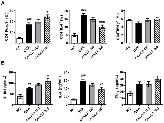 2.4. LF Decreased OVA-Specific Th2 Responses in the Spleen