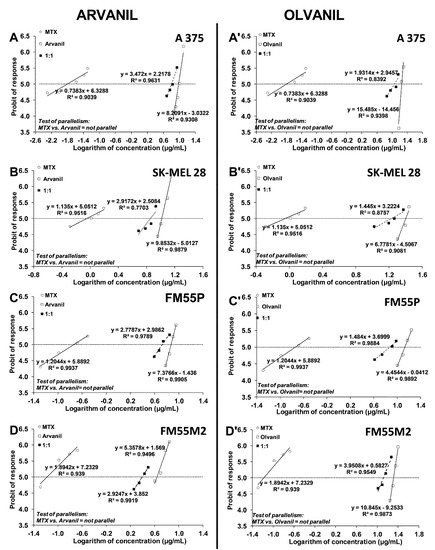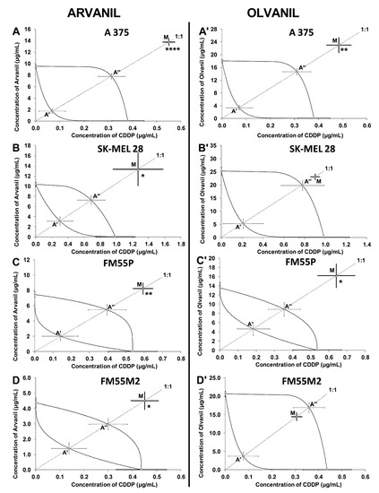 APA StyleMarzęda, P., Wróblewska-Łuczka, P., Florek-Łuszczki, M., Drozd, M., Góralczyk, A., & Łuszczki, J. J. (2022). Comparison of the Anticancer Effects of Arvanil and Olvanil When Combined with Cisplatin and Mitoxantrone in Various Melanoma Cell Lines—An Isobolographic Analysis. International Journal of Molecular Sciences, 23(22), 14192. https://doi.org/10.3390/ijms232214192