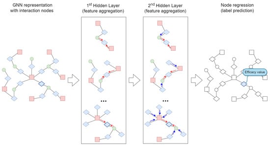 - Gilmer, J.; Schoenholz, S.S.; Riley, P.F.; Vinyals, O.; Dahl, G.E. Neural Message Passing for Quantum Chemistry. In Proceedings of the 34th International Conference on Machine Learning, Sydney, Australia, 6–11 August 2017; Volume 70, pp. 1263–1272. [Google Scholar]