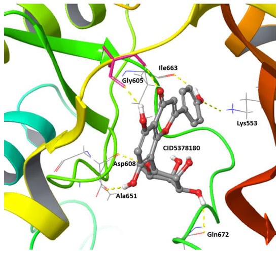 | 68916574 | ![]() | −9.34 | 2 H-bonds Gly605 |