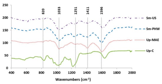 - Fernando, I.P.S.; Asanka Sanjeewa, K.K.; Samarakoon, K.W.; Lee, W.W.; Kim, H.S.; Kim, E.A.; Gunasekara, U.K.D.S.S.; Abeytunga, D.T.U.; Nanayakkara, C.; de Silva, E.D.; et al. FTIR characterization and antioxidant activity of water soluble crude polysaccharides of Sri Lankan marine algae. Algae 2017, 32, 75–86. [Google Scholar] [CrossRef]