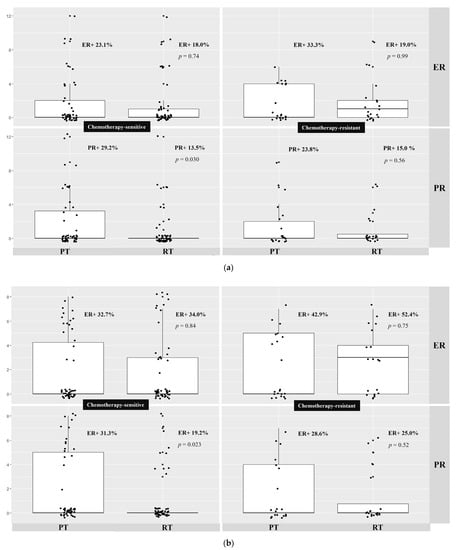 - Feng, Z.; Wen, H.; Ju, X.; Bi, R.; Chen, X.; Yang, W.; Wu, X. Hormone receptor expression profiles differ between primary and recurrent high-grade serous ovarian cancers. Oncotarget 2017, 8, 32848–32855. [Google Scholar] [CrossRef] [PubMed]