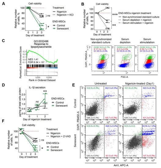 2.4. Nigericin Triggered Senolysis in END-MSCs Via Complex Action on The ‘Damper’ Systems of Senescent Cells