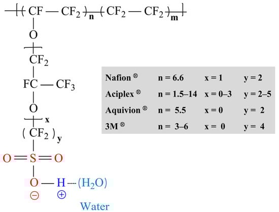 Types and structures of perfluorinated sulfonic acid polymers. Adapted with permission from [5]. Copyright 2017, Chemical Society.