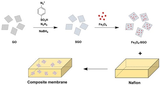 Preparation of Nafion/Fe3O4-SGO membrane. Adapted with permission from [96]. Copyright 2018, Royal Society of Chemistry.
