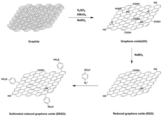 Synthesis of sulfonated reduced graphene oxide (SRGO). Adapted with permission from [102]. Copyright 2016, Elsevier.