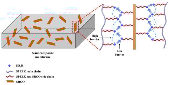 Formation of additional proton conducting channels between polymer matrix (SPEEK) and SRGO. Adapted with permission from [102]. Copyright 2016, Elsevier.