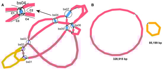 - Wick, R.R.; Judd, L.M.; Gorrie, C.L.; Holt, K.E. Unicycler: Resolving bacterial genome assemblies from short and long sequencing reads. PLoS Comput. Biol. 2017, 13, e1005595. [Google Scholar] [CrossRef]