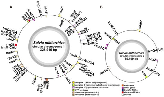 2.2. Gene Content of S. miltiorrhiza Mitogenome
