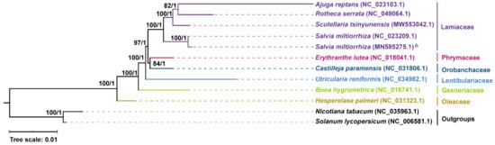 4.7. Phylogenetic Analysis of the Nine Lamiales Species
